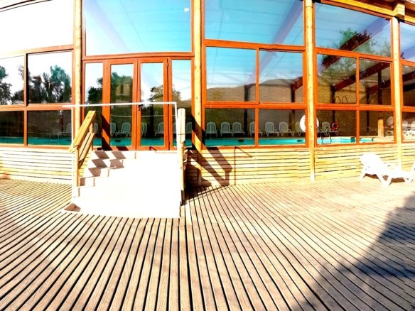 Piscina temperada con terraza exterior